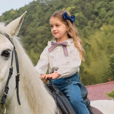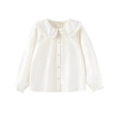 Kids Girls White/Blue Cotton Blouse Shirt Tops