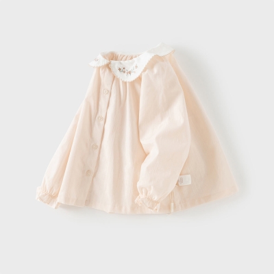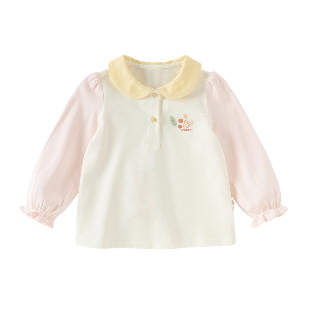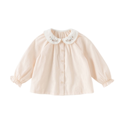 Toddler Girls Cute Pink/Beige Flower Embroidery Cotton Breathable Shirt Tops