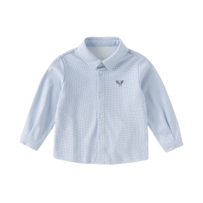 Toddler Boys Blue Houndstooth Cotton Formal Shirts Tops