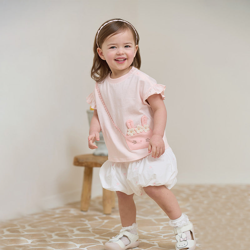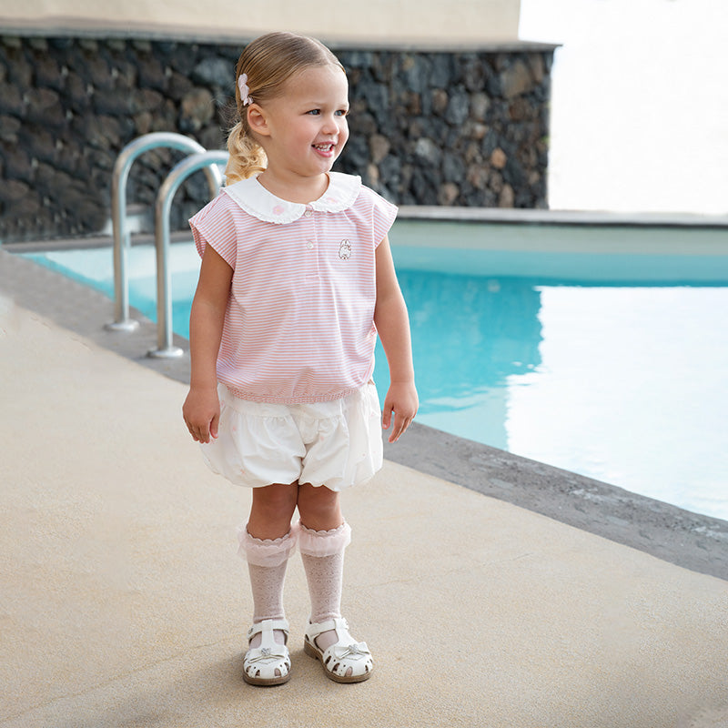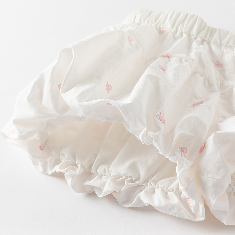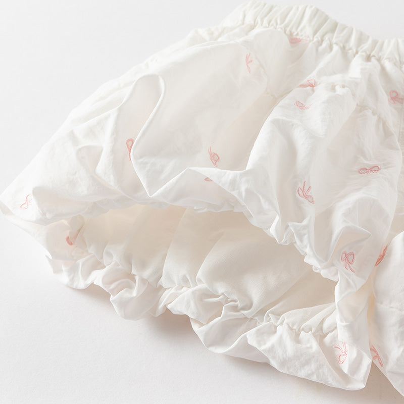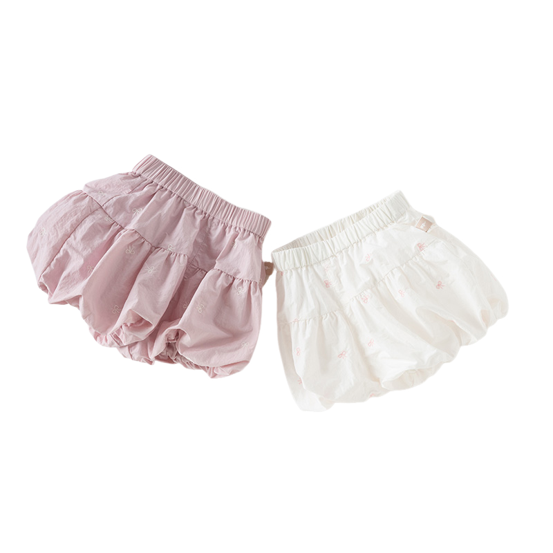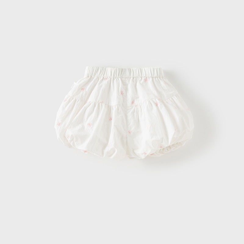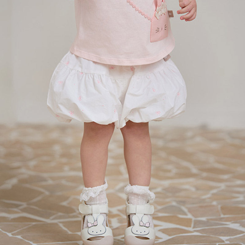 Toddler Girl Summer White/Pink Lantern Flower Bud Shorts